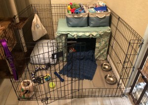 It is highly recommend that you crate train your puppy until they can be fully trusted to have free roam of your home. Puppies should not be allowed to have free roam until they can be trusted to not only not have accidents in the home, but more importantly you want to be sure that your puppy isn’t going to eat anything that it shouldn’t. An x pen around a small crate is a great set up for a small puppy. Most animals like having their own area to retreat to and often times you’ll find that they willingly go into their pen. This is also a great area for time out or when the puppy can’t be watched. Another very important reason to crate train your dog is so that they feel safe in a crate rather than anxious. God forbid your dog have an emergency where it needs to have an overnight stay at a vet, it will be kept in a metal cage. It is best for your dog to already feel safe in a crate so it does not have any additional stress.